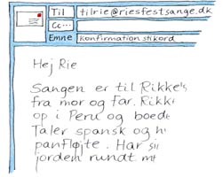 Eller du kan maile dine stikord og oplysninger til mig på adressen tilrie@riesfestsange.dk